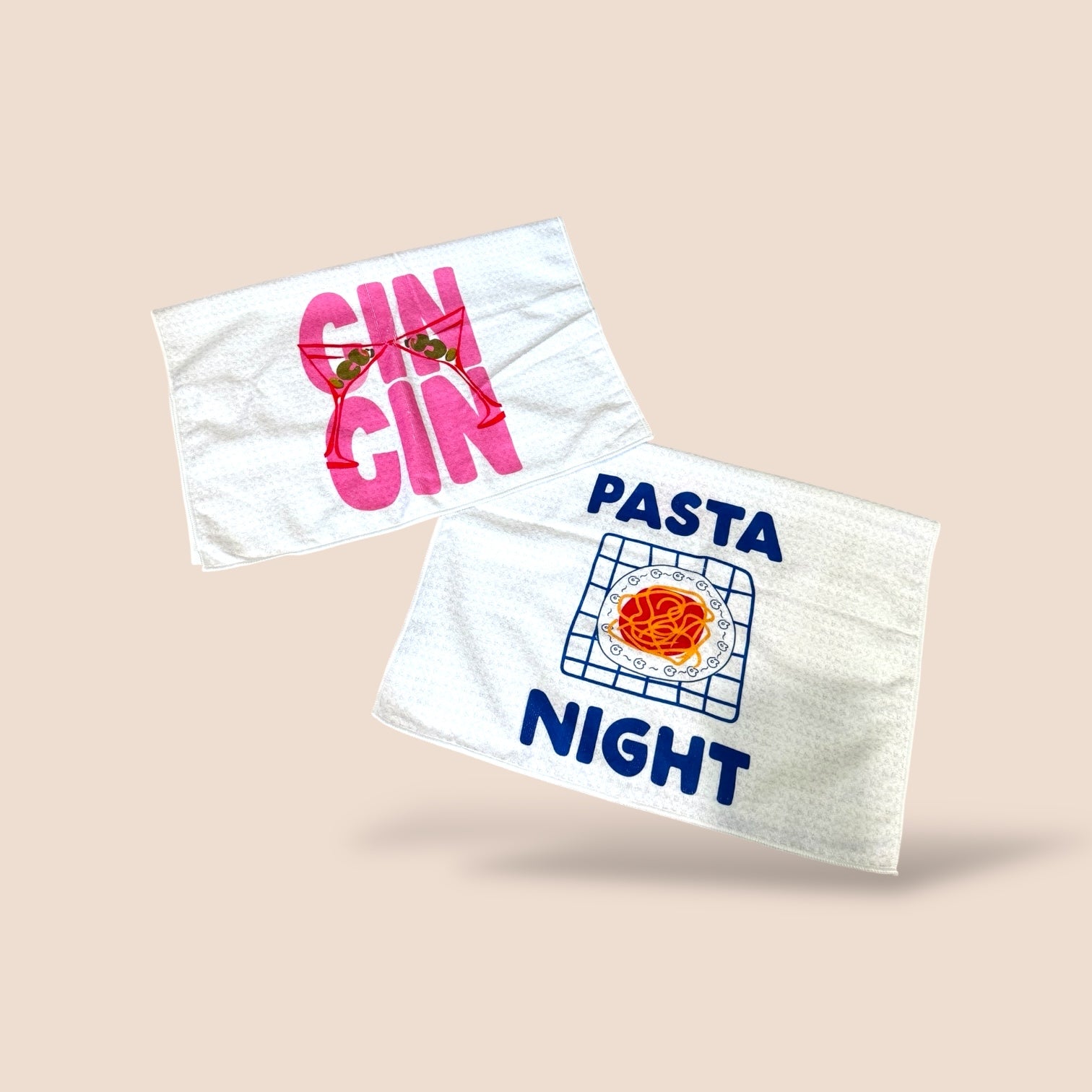 Bring personality to the kitchen with this bold, playful towel duo. From “Cin Cin” cocktails to cozy pasta nights, these cotton towels are a fun way to celebrate life’s little rituals. A perfect hostess gift, housewarming surprise, or foodie-approved bundle add-on
