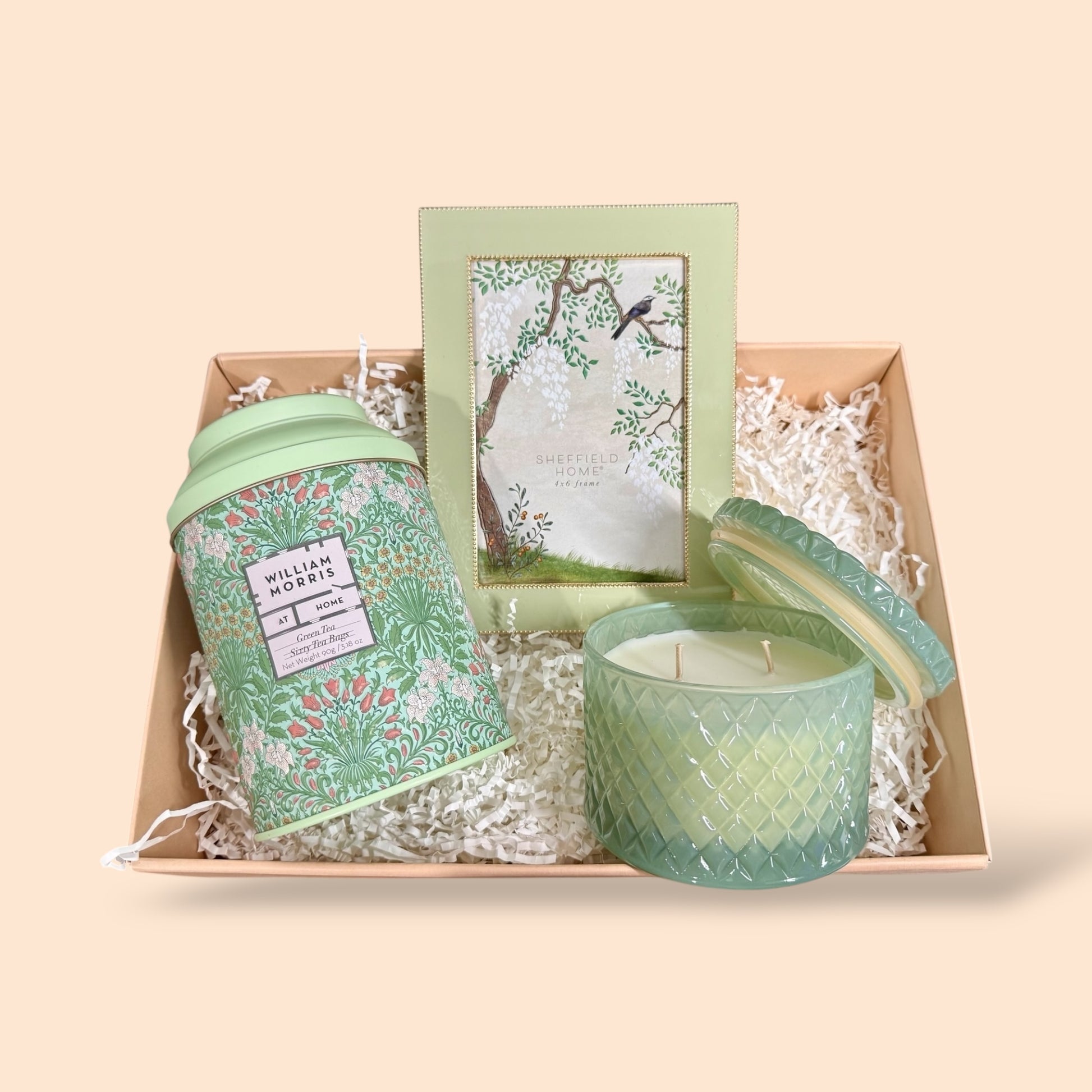 This bundle is a breath of fresh air. With a botanical green tea tin, quilted glass candle, and a leafy photo frame, it invites calm, comfort, and a little touch of nature indoors. It’s a soft and grounding gift for anyone in need of pause and presence.